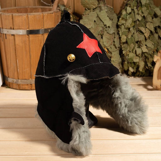 Шапка для бани из овчины "Будёновка" скорняжный шов, черный