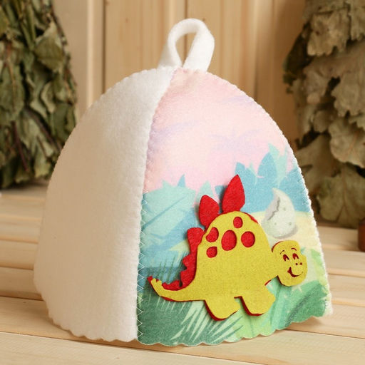 Шапка для бани детская с аппликацией динозавтра "Рич", войлок
