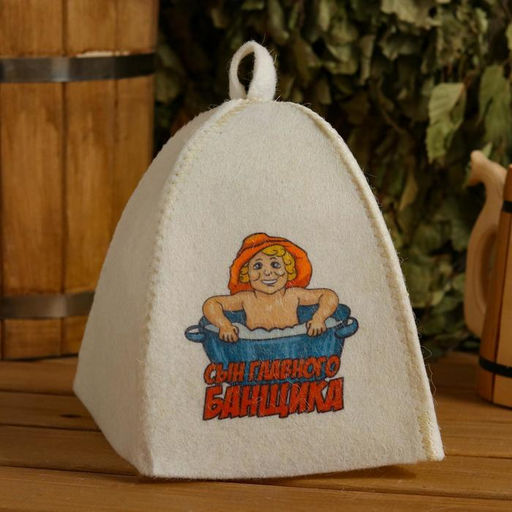 Шапка для бани детская "Сын главного Банщика" с принтом, белая