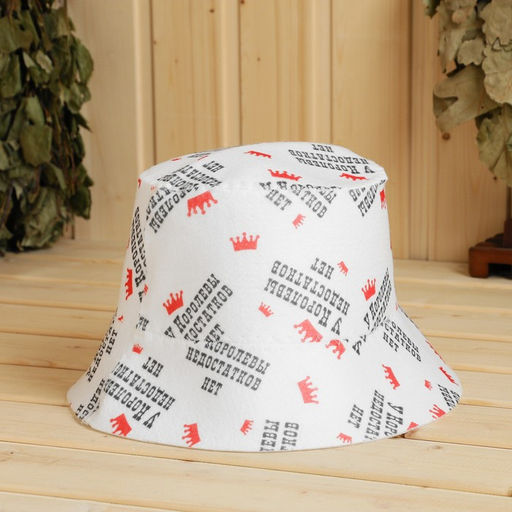 Шапка-панама для бани с принтом "У королевы недостатков нет"