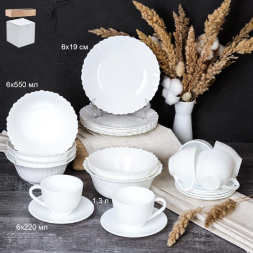 Столовый набор 25 предметов Тюльпан белый Смол с чайным набором / 13/LHK670 (WHITE)