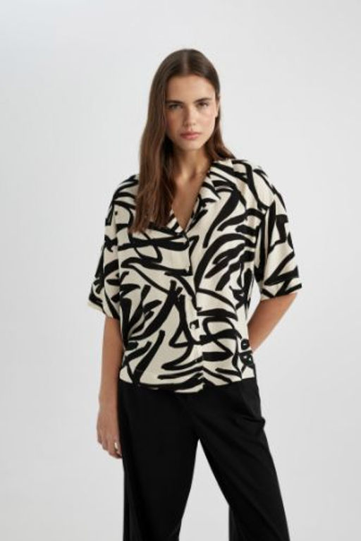 Regular Fit Desenli Pijama Yaka K?sa Kollu Gomlek