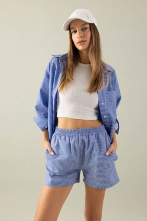 Oversize Genis Kal?p Cizgili Poplin Uzun Kollu Gomlek