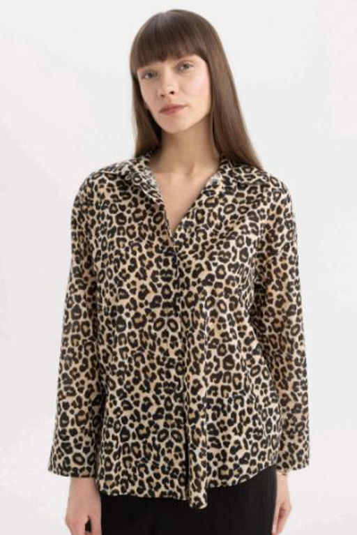 Oversize Genis Kal?p Uzun Kollu Leopar Desenli Vual Gomlek