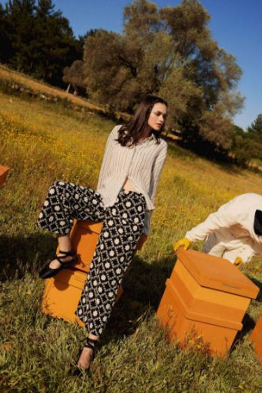 Lug Von Siga x DeFacto Oversize Cizgili Keten Uzun Kollu Gomlek