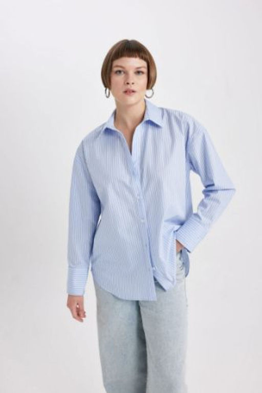 Oversize Genis Kal?p Cizgili Poplin Uzun Kollu Gomlek