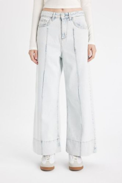 K?sa Genis Paca Yuksek Bel Bilek Boy Jean Y?kamal? Pantolon