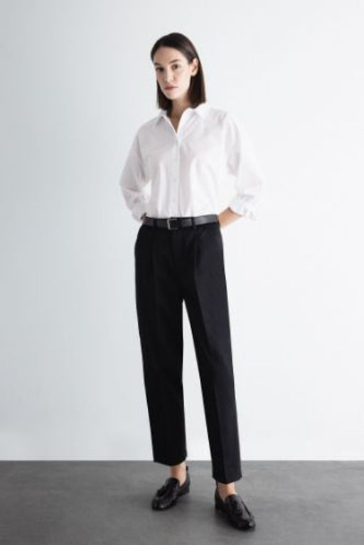 Kemerli Klasik Pantolon Carrot Fit Siyah Yuksek Bel Dar Paca Piliseli Basic Duz K?sa Paca