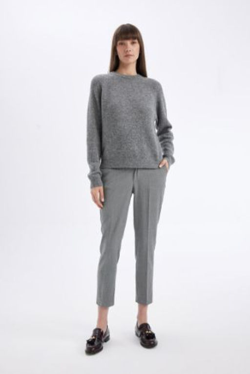 Klasik Chino Pantolon Yuksek Bel Cepli Duz Paca