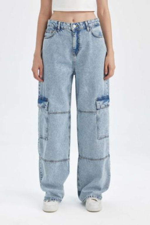 Straight Fit Kargo Yuksek Bel Uzun Jean Y?kamal? Pantolon