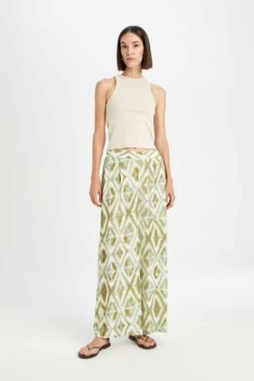 Viskon Pantolon Relax Fit Desenli Cepli Genis Paca Krink?l