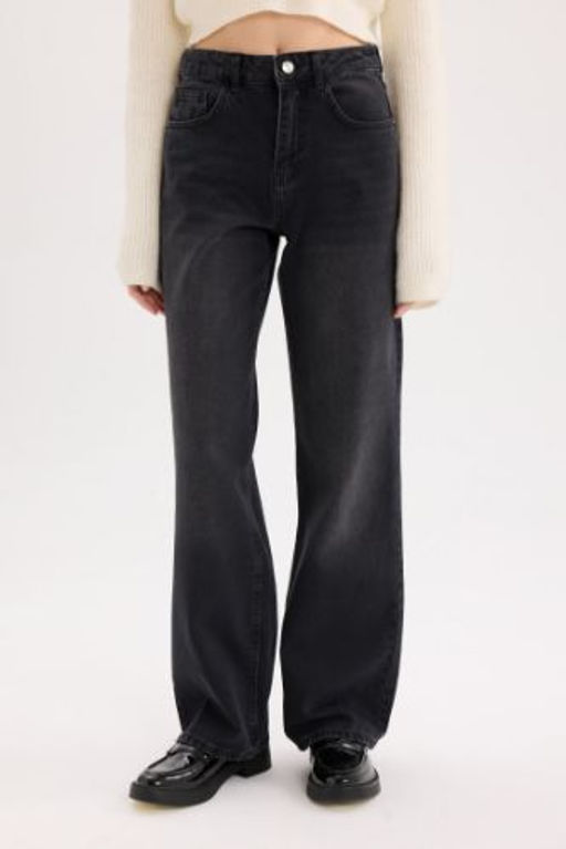 Straight Wide Yuksek Bel Uzun Jean Y?kamal? Pantolon