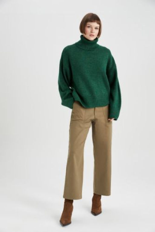 Gabardin Pantolon Straight Fit Cepli Yuksek Bel Duz Paca