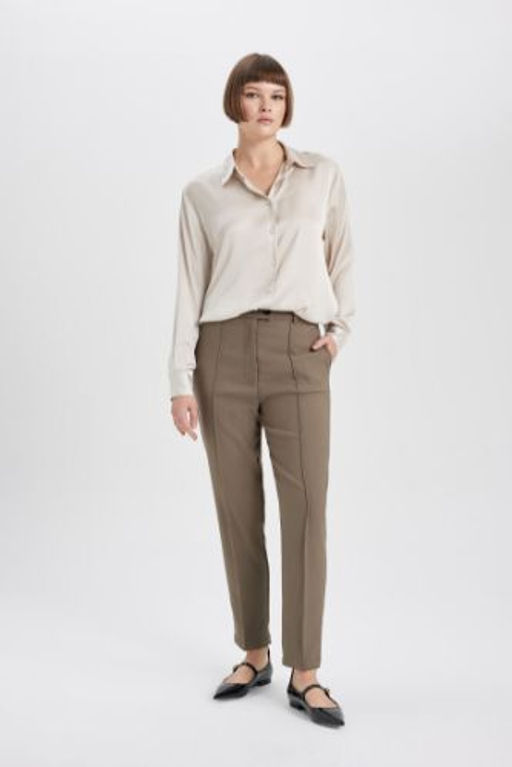 Chino Pantolon Regular Fit Duz Paca Yuksek Bel Basic Duz