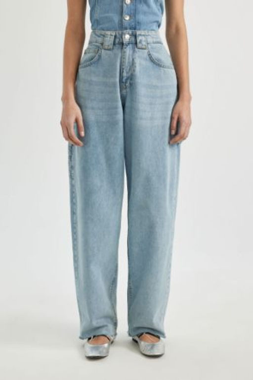 Baggy Yuksek Bel Bol Kesim Uzun Jean Pantolon