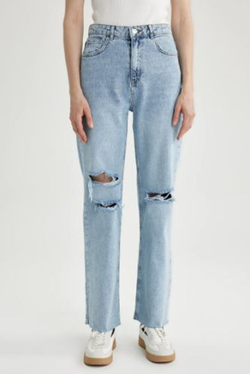 90s Wide Leg Yuksek Bel Genis Paca Y?rt?k Detayl? Uzun Jean Pantolon