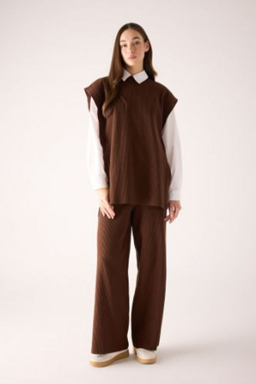 Relax Fit Triko Pantolon Beli Lastikli Basic Duz Genis Paca