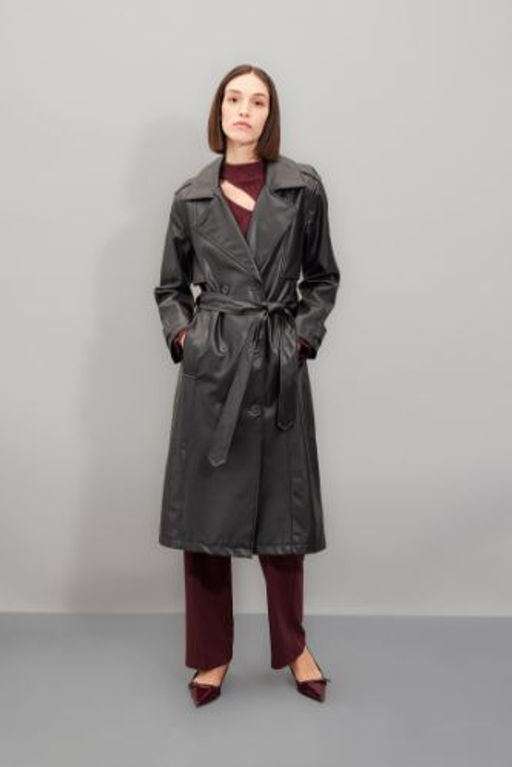 Su Itici Suni Deri Trenckot Kruvaze Yaka Dugmeli Kemerli Cepli