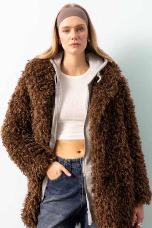 Regular Fit Cepli C?tc?tl? Uzun Suni Kurk Ceket Mont