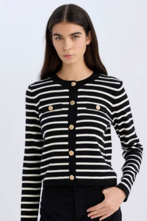 Regular Fit Bisiklet Yaka Cizgili Dugmeli Triko H?rka
