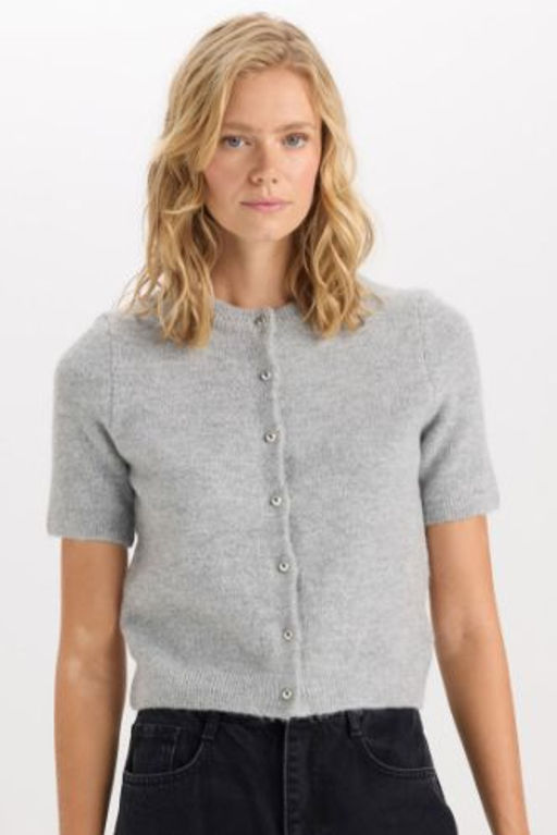 Regular Fit Bisiklet Yaka Basic Duz Dugmeli K?sa Kollu Triko H?rka
