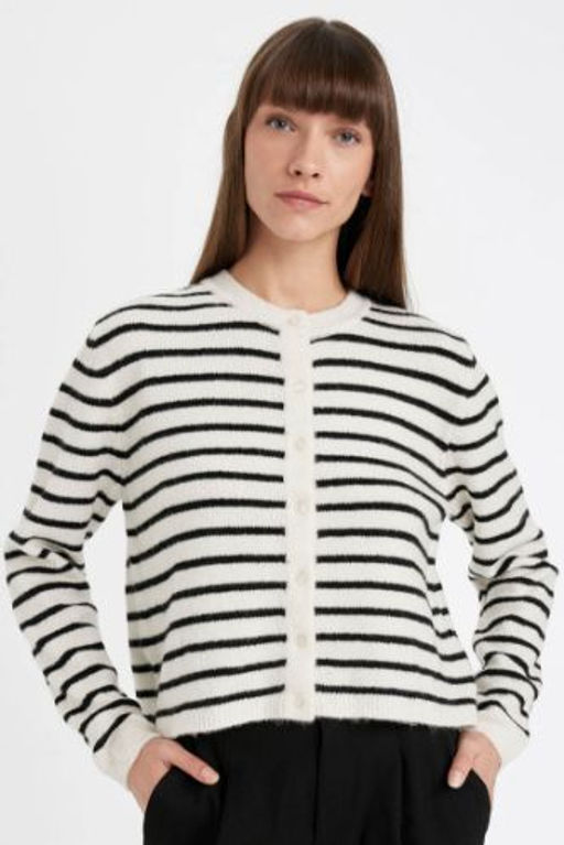 Regular Fit Bisiklet Yaka Cizgili Dugmeli Triko H?rka
