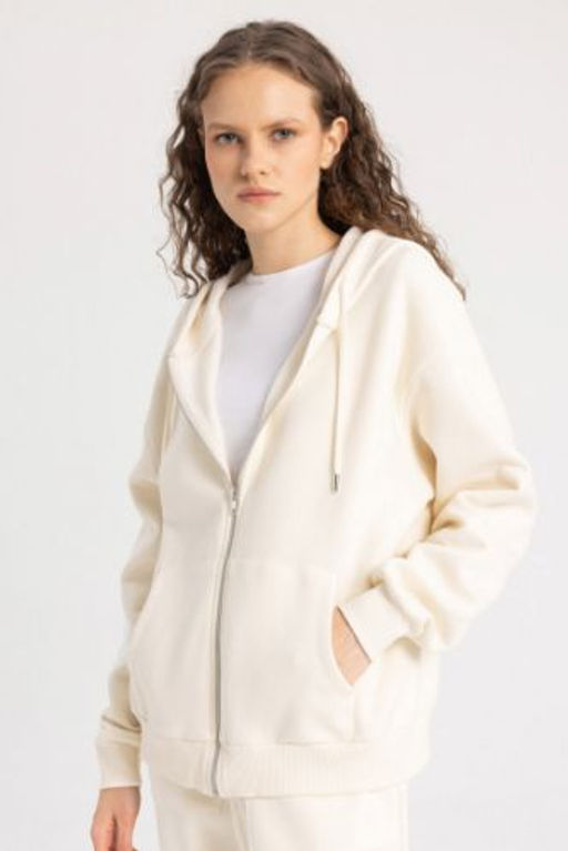 Relax Fit Kapusonlu Cepli Basic Duz Fermuarl? Sweatshirt