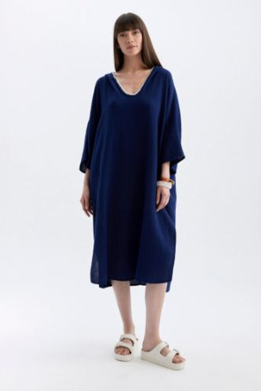 Fall in Love Kapusonlu Pamuklu Plaj Midi Elbisesi