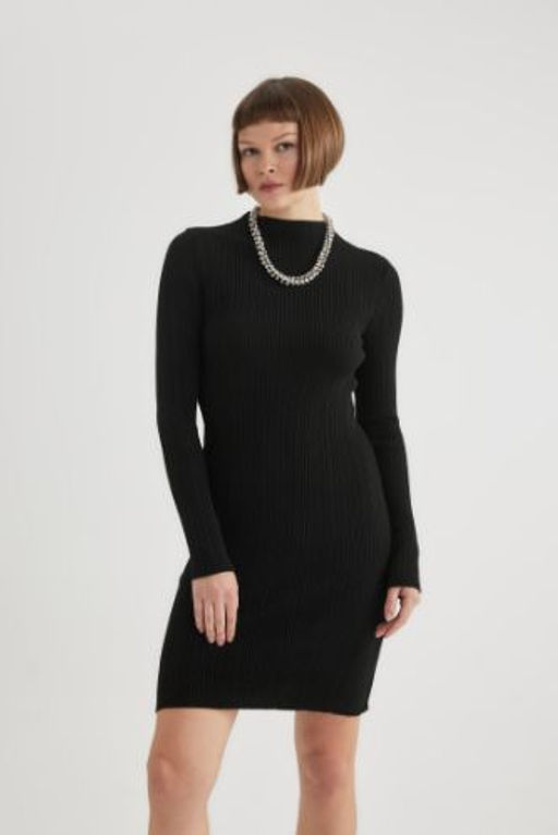 Fitted Yar?m Bal?kc? Yaka Uzun Kollu Mini Triko Elbise