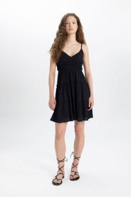A Kesim V Yaka Ask?l? Siyah K?sa Kollu Elbise