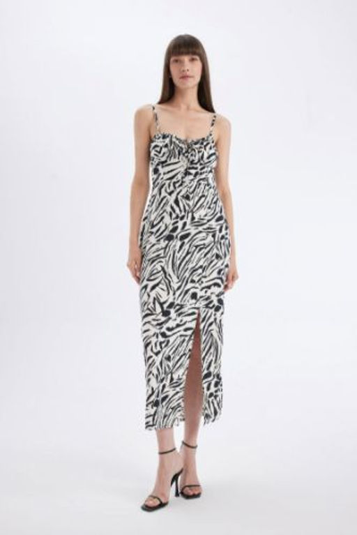 A Kesim Kalp Yaka Zebra Desenli Viskon Ask?l? Maxi Elbise