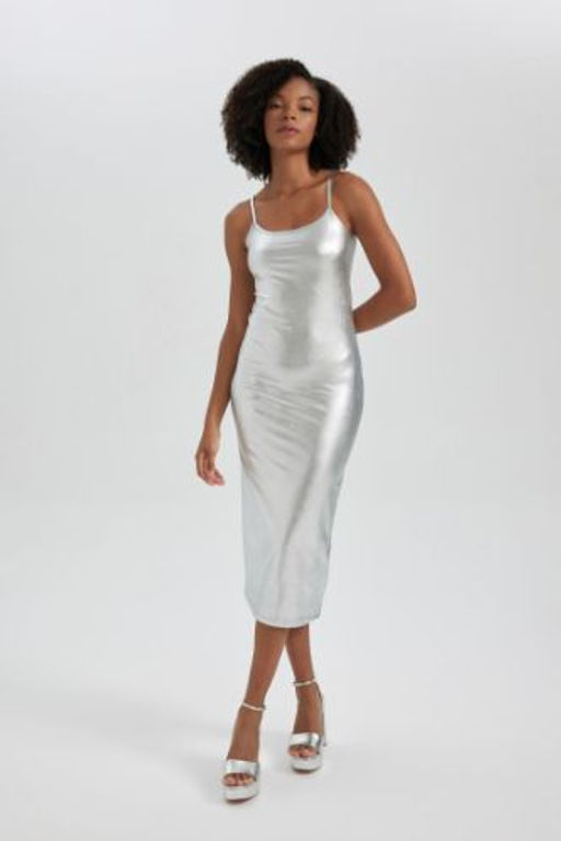 Fitted Vucudu Saran Ask?l? Maxi Parlak Elbise
