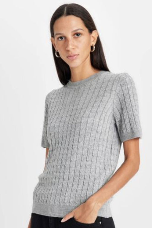 Regular Fit Bisiklet Yaka Sac Orgulu K?sa Kollu Triko Kazak