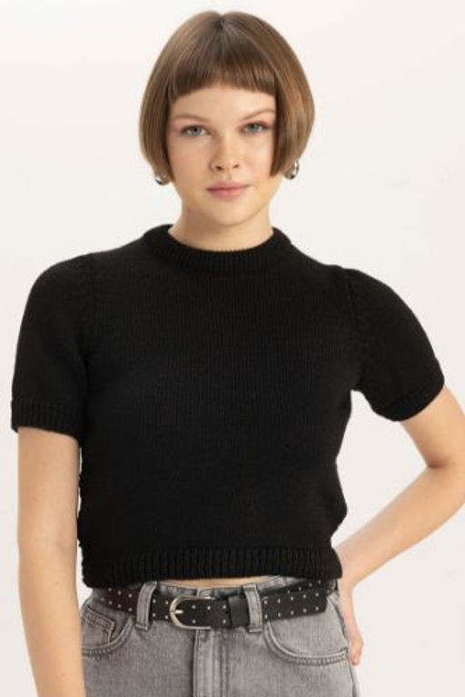 Fitted Bisiklet Yaka K?sa Kollu Triko Kazak