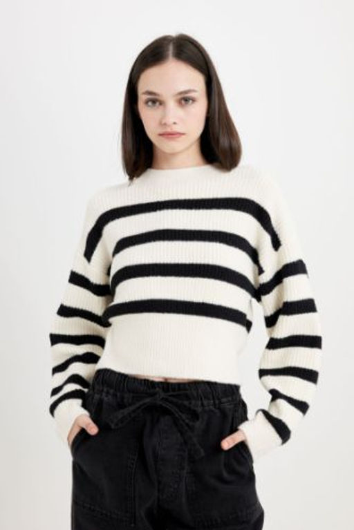 Regular Fit Cizgili Bisiklet Yaka Triko Kazak