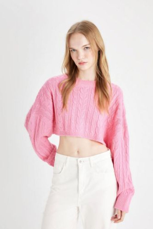 Coool Regular Fit Crop Bisiklet Yaka Sac Orgulu Triko Kazak