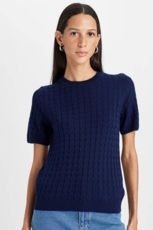 Regular Fit Bisiklet Yaka Sac Orgulu K?sa Kollu Triko Kazak