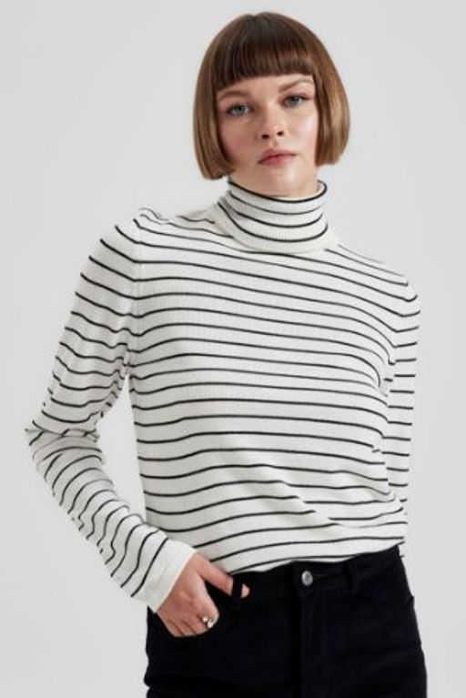 Regular Fit Bal?kc? Yaka Cizgili Triko Kazak