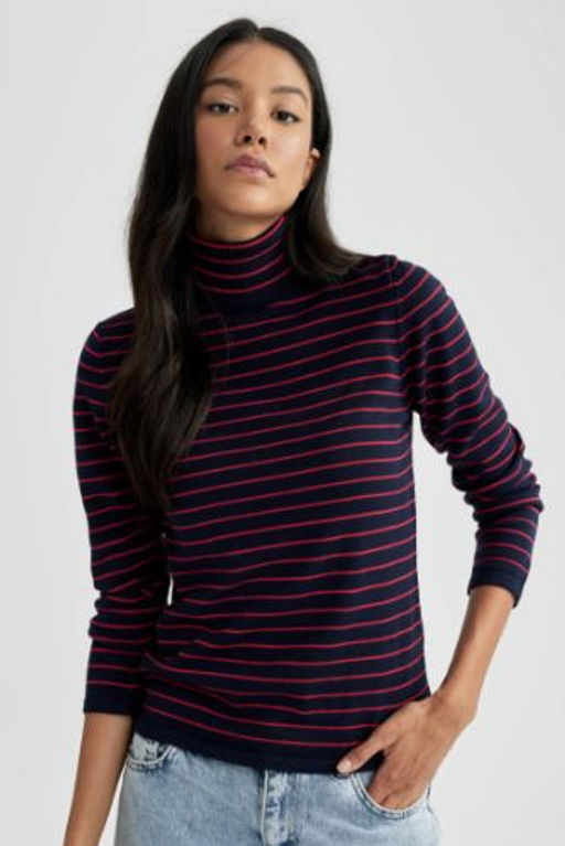 Regular Fit Bal?kc? Yaka Cizgili Triko Kazak