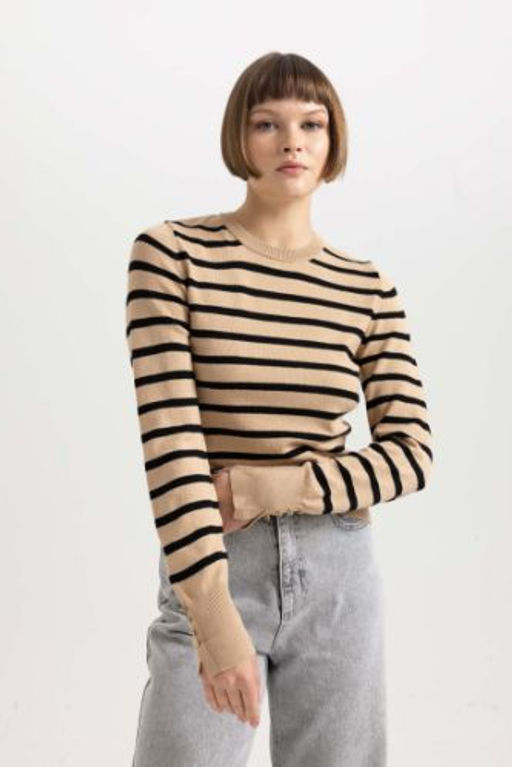Regular Fit Cizgili Bisiklet Yaka Triko Kazak