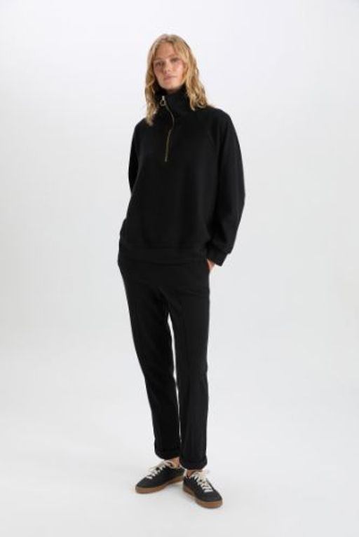 Beli Lastikli Basic Duz Bagc?kl? Cepli Paca Katlamal? Uzun Boy Siyah Pantolon