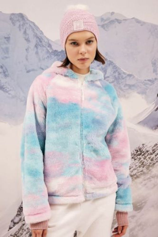 DeFactoFit Standart Fit Renkli Pelus Kapusonlu Fermuarl? Sweatshirt