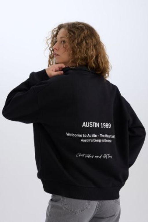 Oversize Genis Kal?p Yar?m Fermuarl? S?rt Bask?l? Sweatshirt