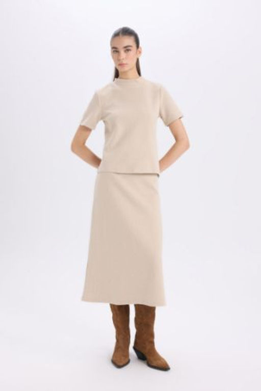 A Kesim Esnek Belli Basic Duz Normal Bel Maxi Etek