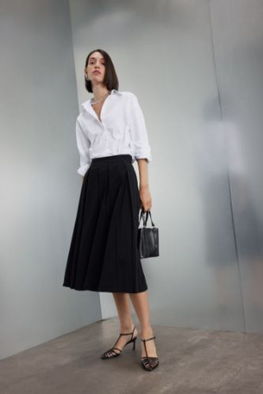 Piliseli Esnel Belli Basic Duz Siyah Midi Etek