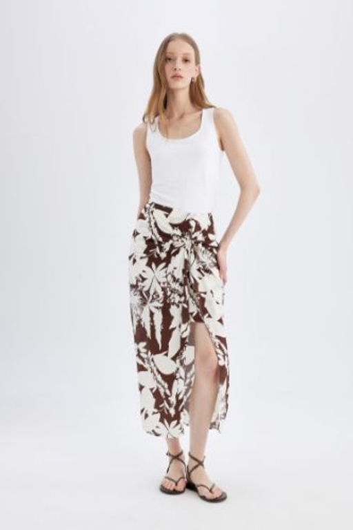 Desenli Normal Bel Viskon Y?rtmacl? Maxi Etek