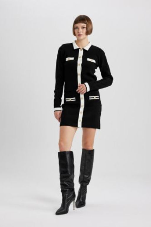 A Kesim Dugmeli Triko Mini Etek