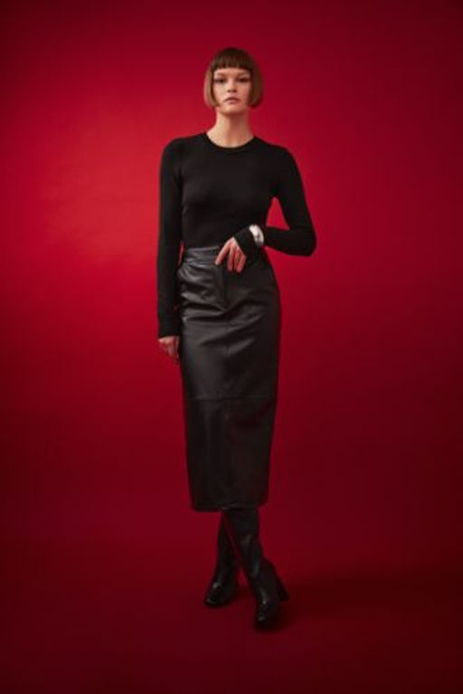 Kalem Normal Bel Suni Deri Midi Etek