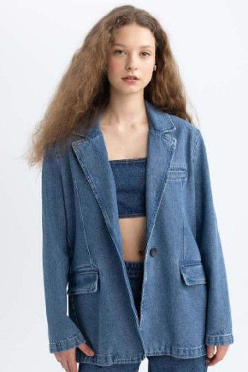 Oversize Genis Kal?p Dugmeli Jean Blazer Ceket