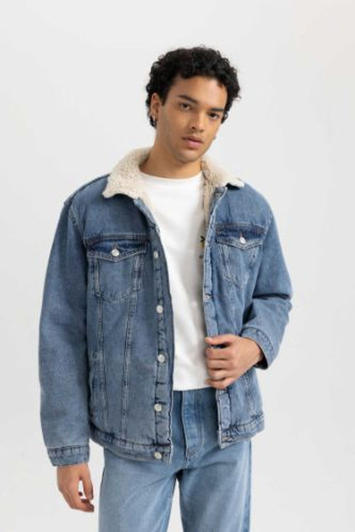 Slim Fit Suni Kurklu Yaka Jean Ceket
